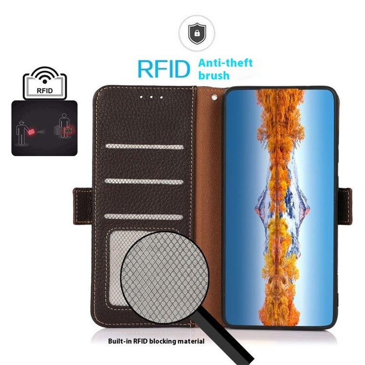 KHAZNEH For OnePlus 13 Phone Case Genuine Cow Leather Cover RFID Blocking - Brown