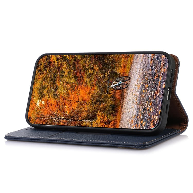 KHAZNEH Phone Case for OnePlus Nord CE 3 Lite 5G / Nord N30 5G Nappa Texture Genuine Cowhide Leather Phone Wallet Cover Stand Shell - Blue