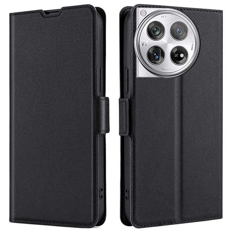 PU Leather Phone Case for OnePlus 12 5G Card Slots Cell Phone Cover Drop Protection Shell - Black
