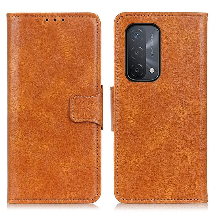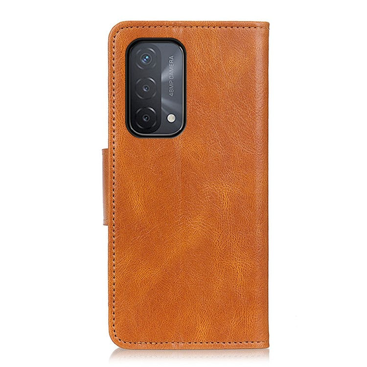 Crazy Horse PU Leather Wallet Stand Protector Cover for Oppo A54 5G/A93 5G/A74 5G - Brown