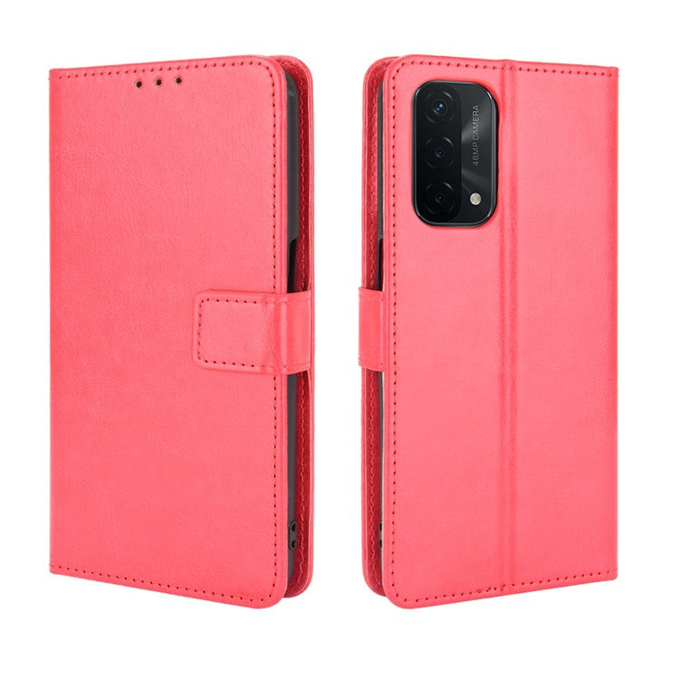 Crazy Horse Wallet Stand Leather Case with Strap for Oppo A93 5G / A74 5G / A54 5G - Red