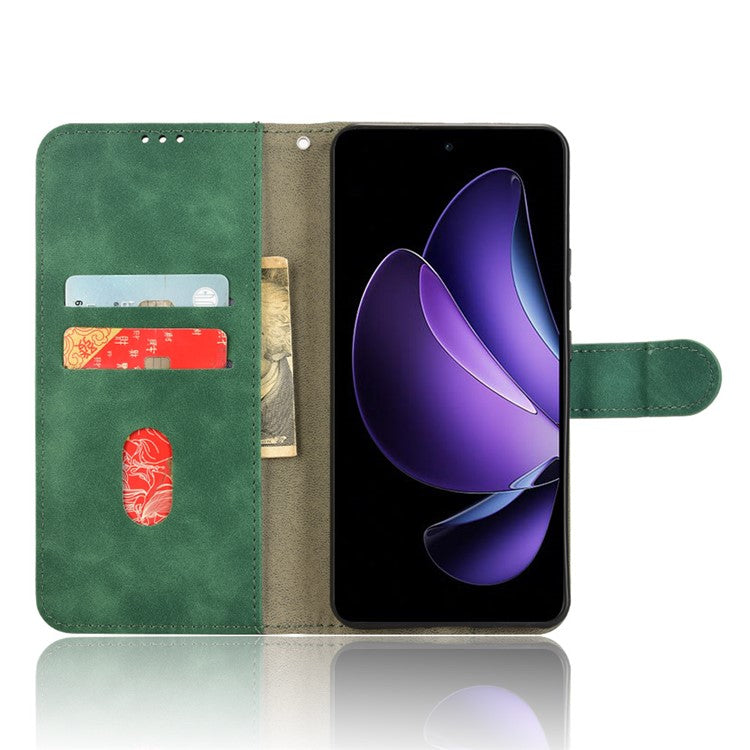 For Oppo Reno13 F 5G Leather Case Skin Feel Anti Drop Wallet Flip Phone Cover - Green