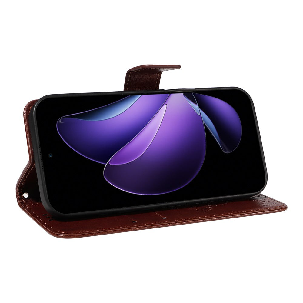 For Oppo Reno13 F 5G Phone Case with Stand Cat Tree Pattern Leather Wallet Mobile Cover - Coffee