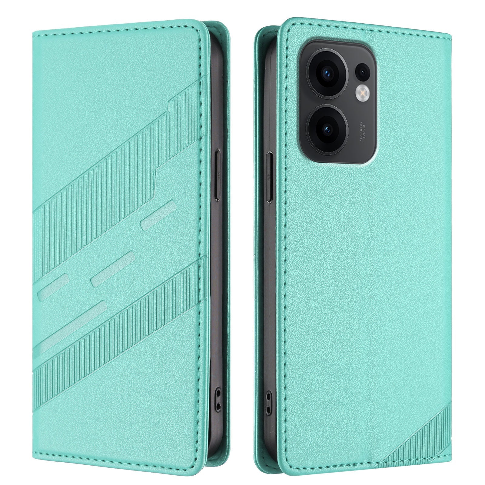 For Oppo Reno13 F 5G Phone Cases Punk Style Imprinted Wallet Stand Leather Cover - Mint Green