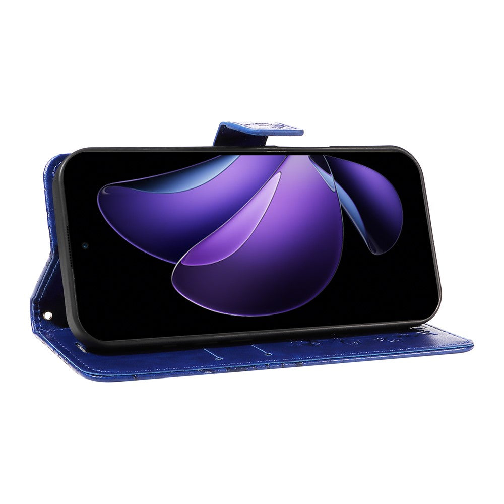For Oppo Reno13 F 5G Wallet Case Floral Butterfly Imprinted Leather Phone Cover Stand - Blue