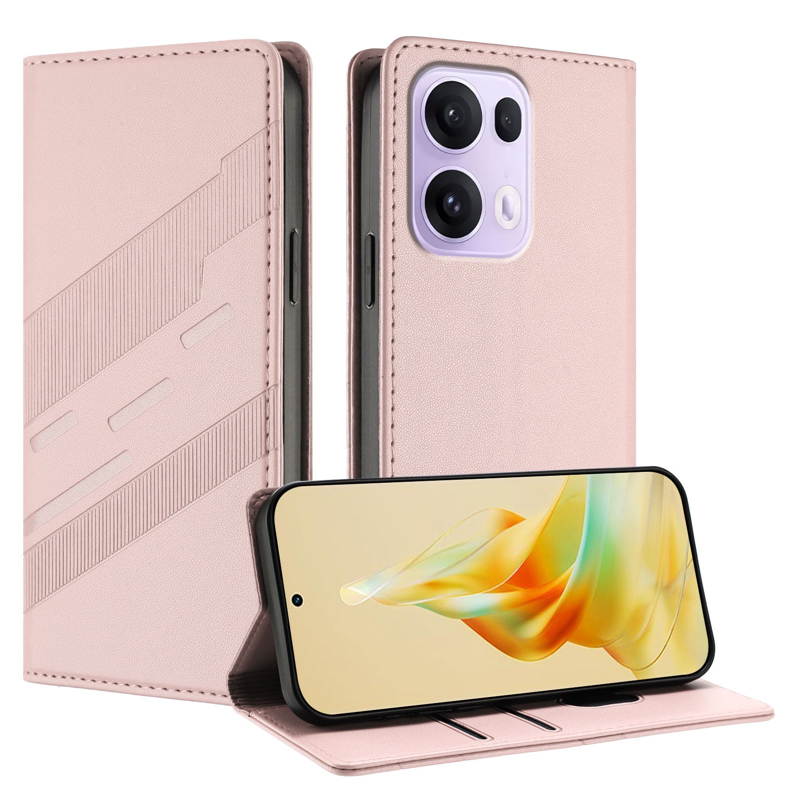 For Oppo Reno13 Pro 5G Phone Cases Punk Style Imprinted Wallet Stand Leather Cover - Pink