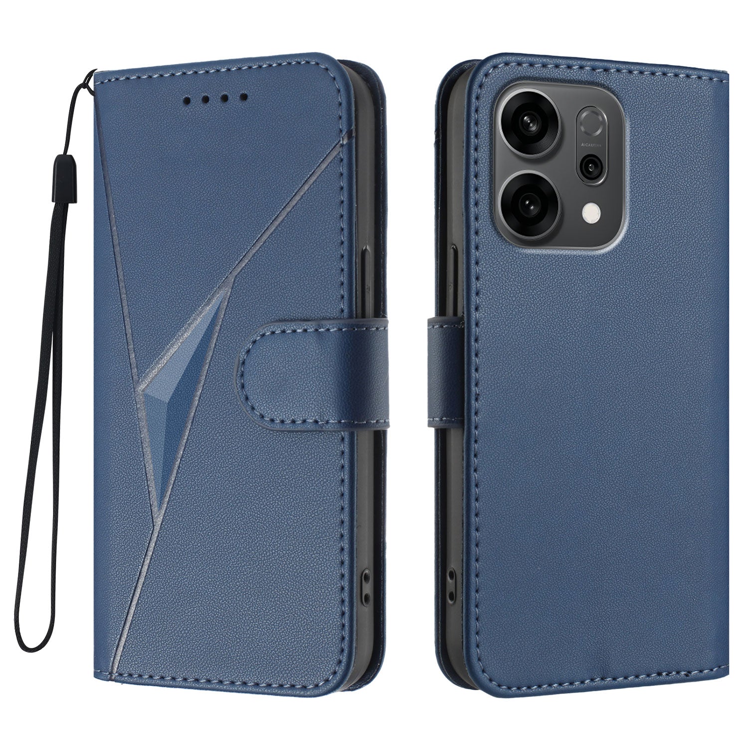 For Oppo Reno14 5G (China) / Oppo Reno14 5G (Global) Case Triangle Imprint Leather Phone Cover with Lanyard - Royal Blue