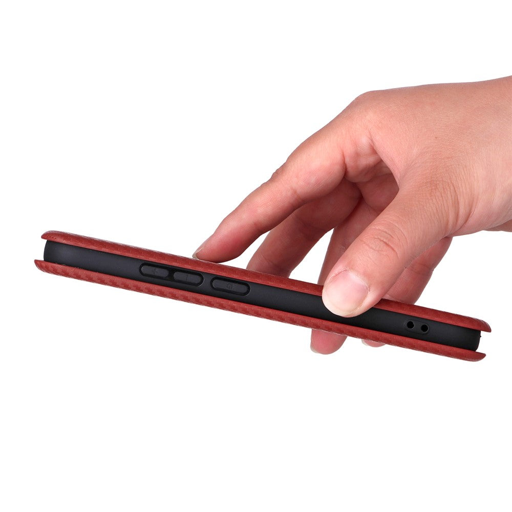 For Oppo Reno14 5G (Global) Case Carbon Fiber Texture Drop-Proof PU Leather Phone Cover - Brown