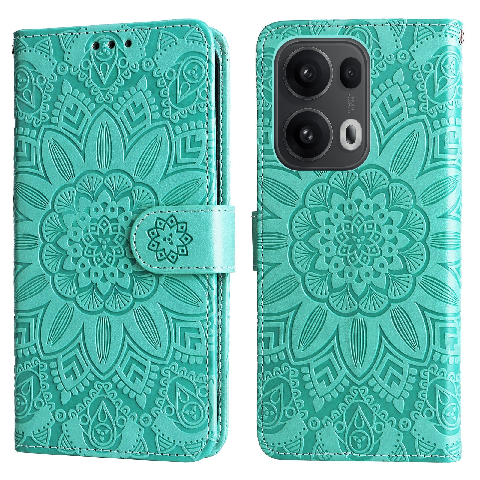 For Oppo Reno14 Pro 5G (China) / Oppo Reno13 Pro 5G / Oppo Reno14 Pro 5G (Global) Case Sunflower Imprint Leather Wallet Phone Cover - Green