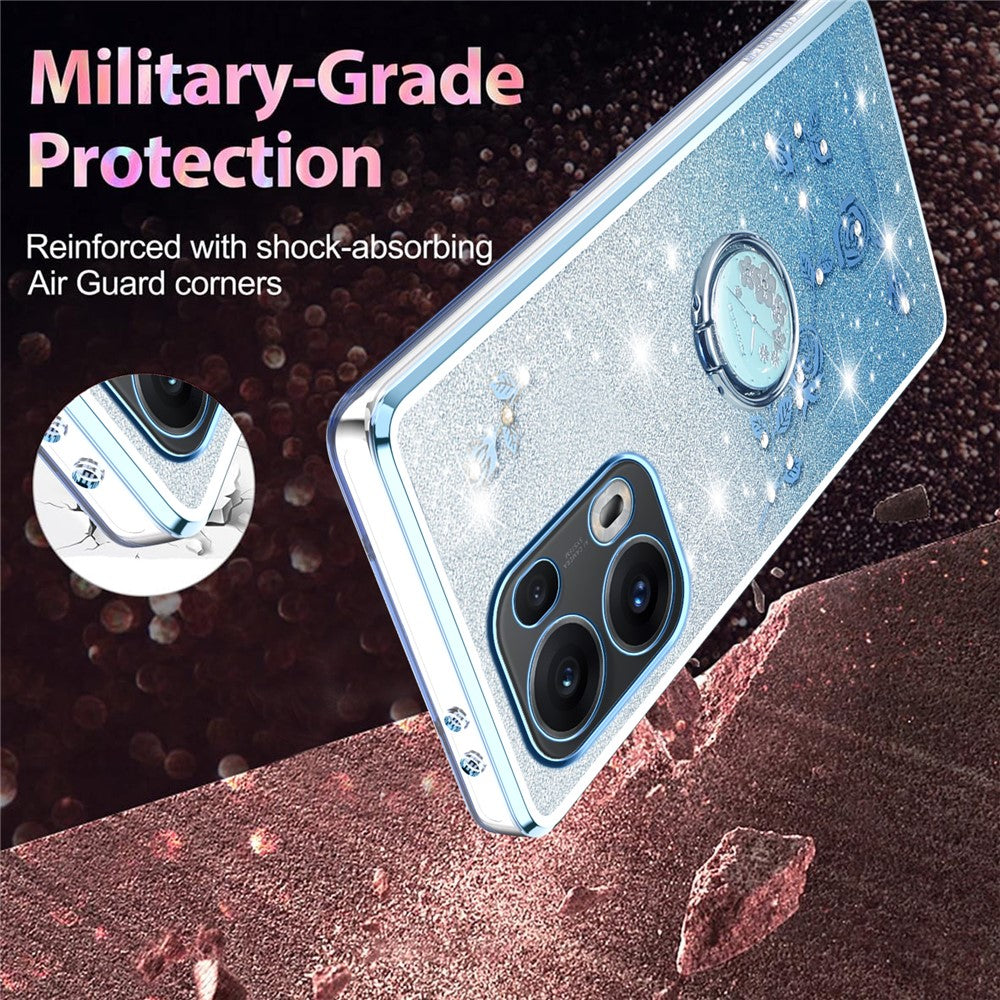 KADEM For Oppo Reno13 Pro 5G Case Ring Kickstand TPU Flowers Phone Cover Gradient Glitter - Blue