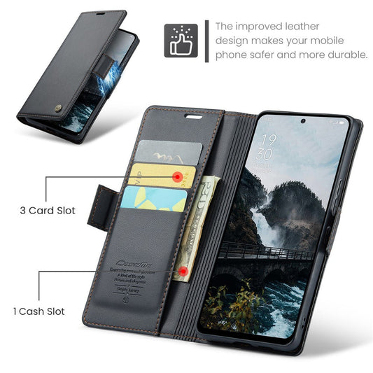 For Oppo Reno13 Pro 5G Case CASEME 023 Series RFID Blocking Leather Wallet Stand Phone Cover - Black