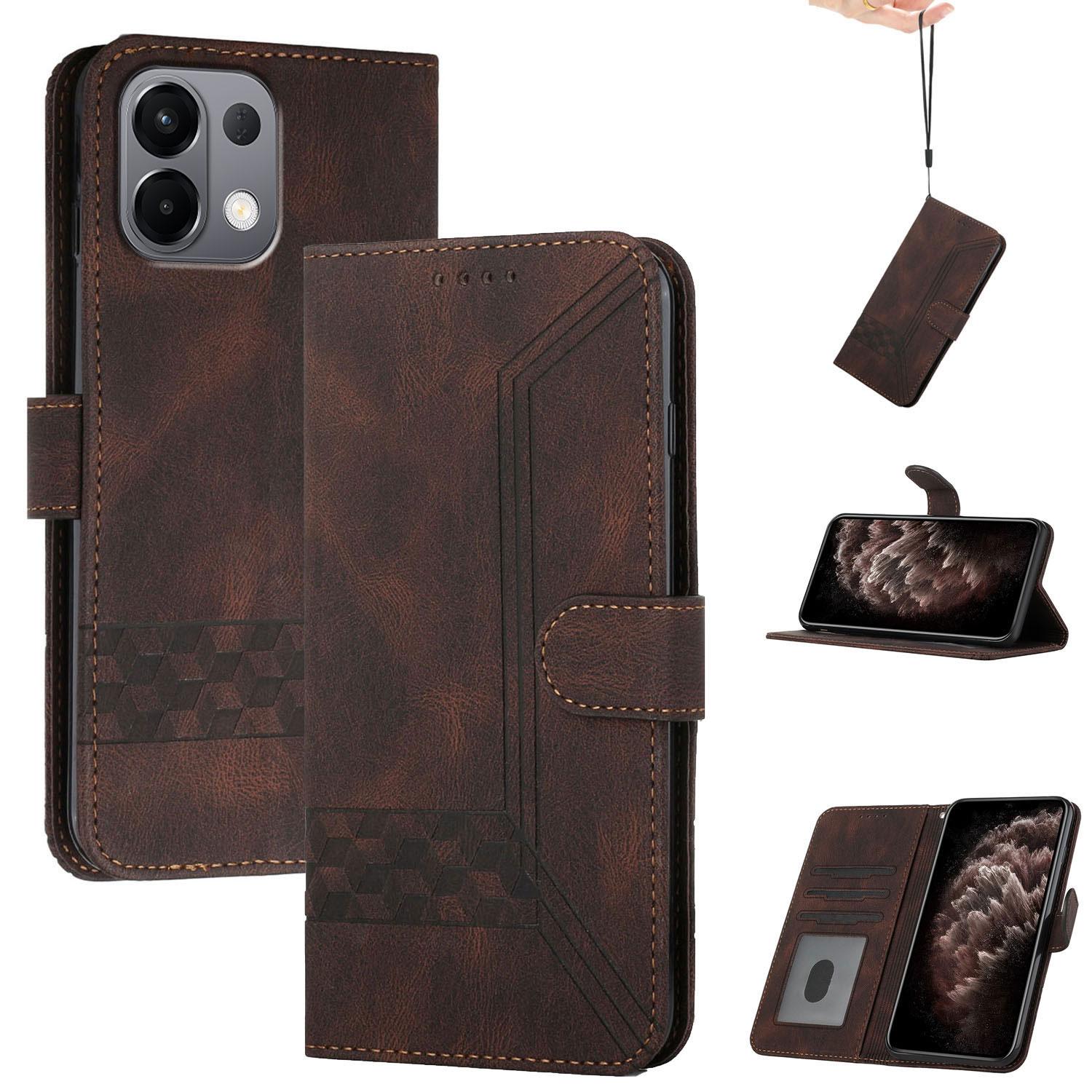 For OPPO K13 5G Cubic Skin Feel Flip Leather Phone Case(Brown)