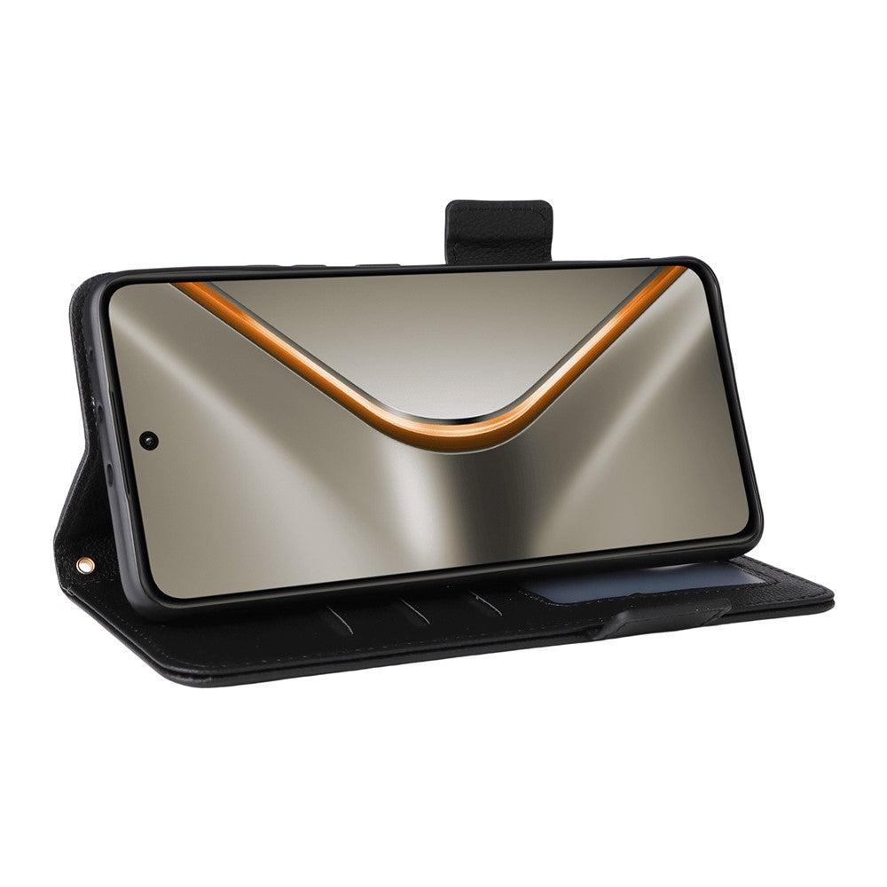 For Oppo K13 5G / K13x / K12s Case with Wrist Strap Litchi Texture PU Leather Wallet Phone Cover - Black