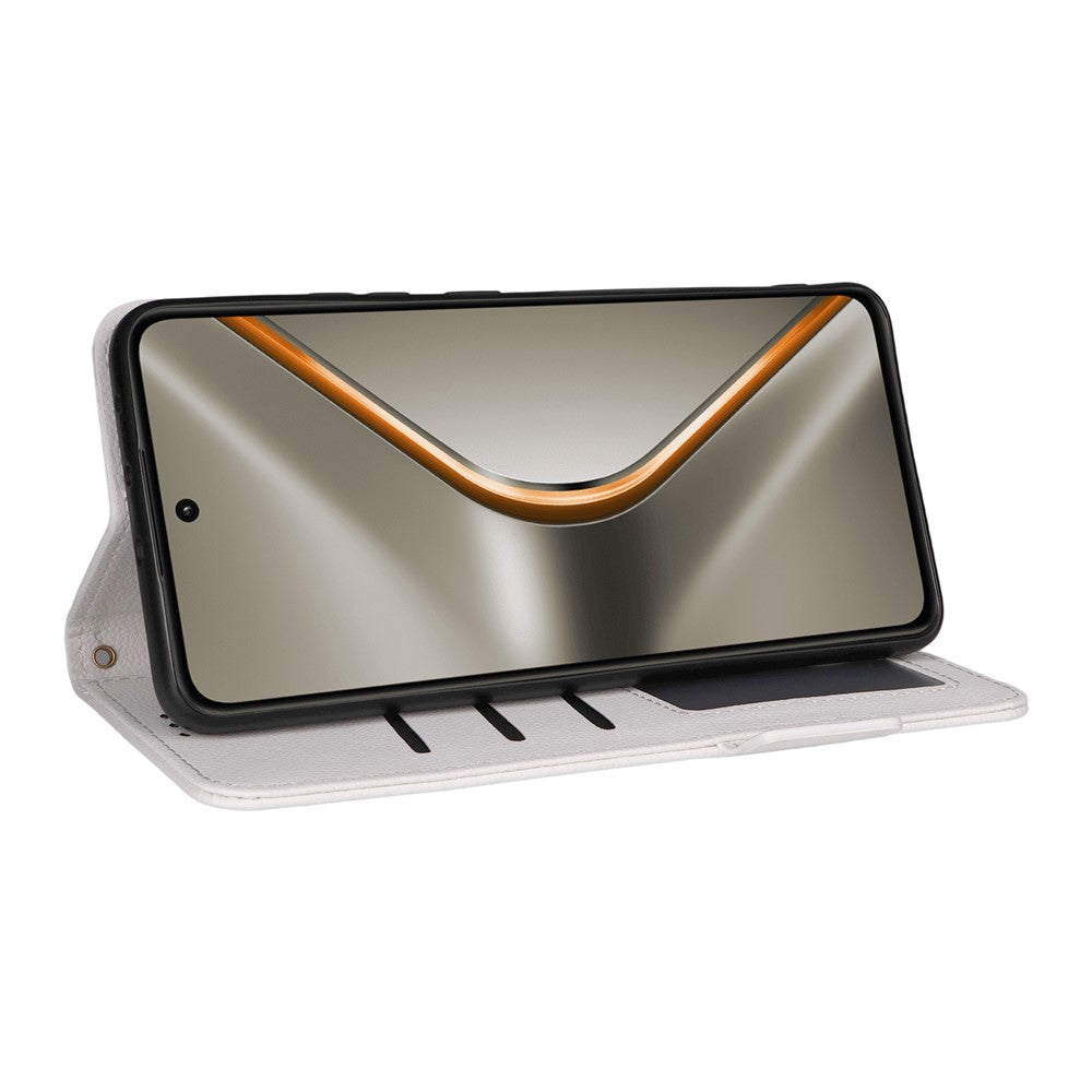 For Oppo K13 5G / K13x / K12s Case with Wrist Strap Litchi Texture PU Leather Wallet Phone Cover - White