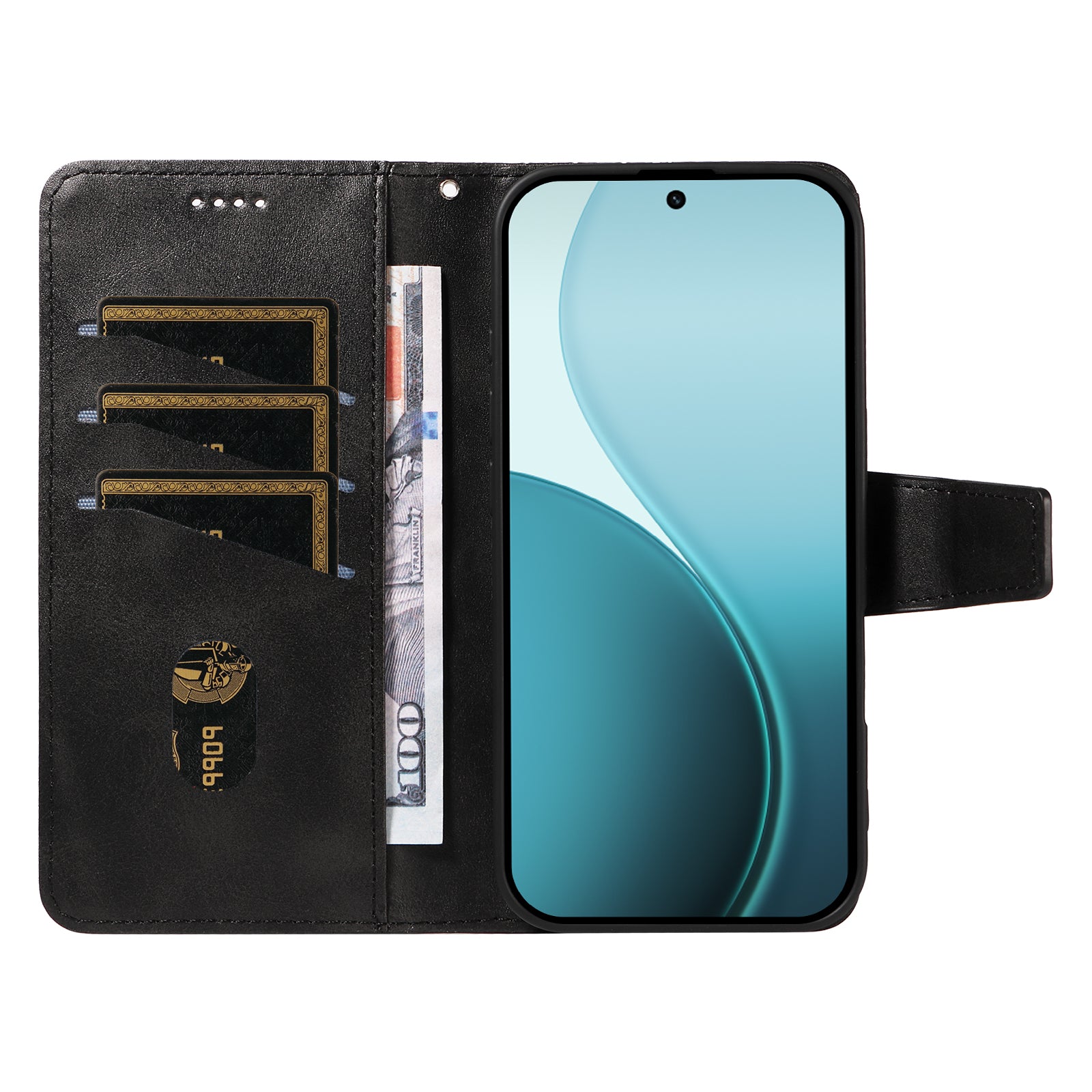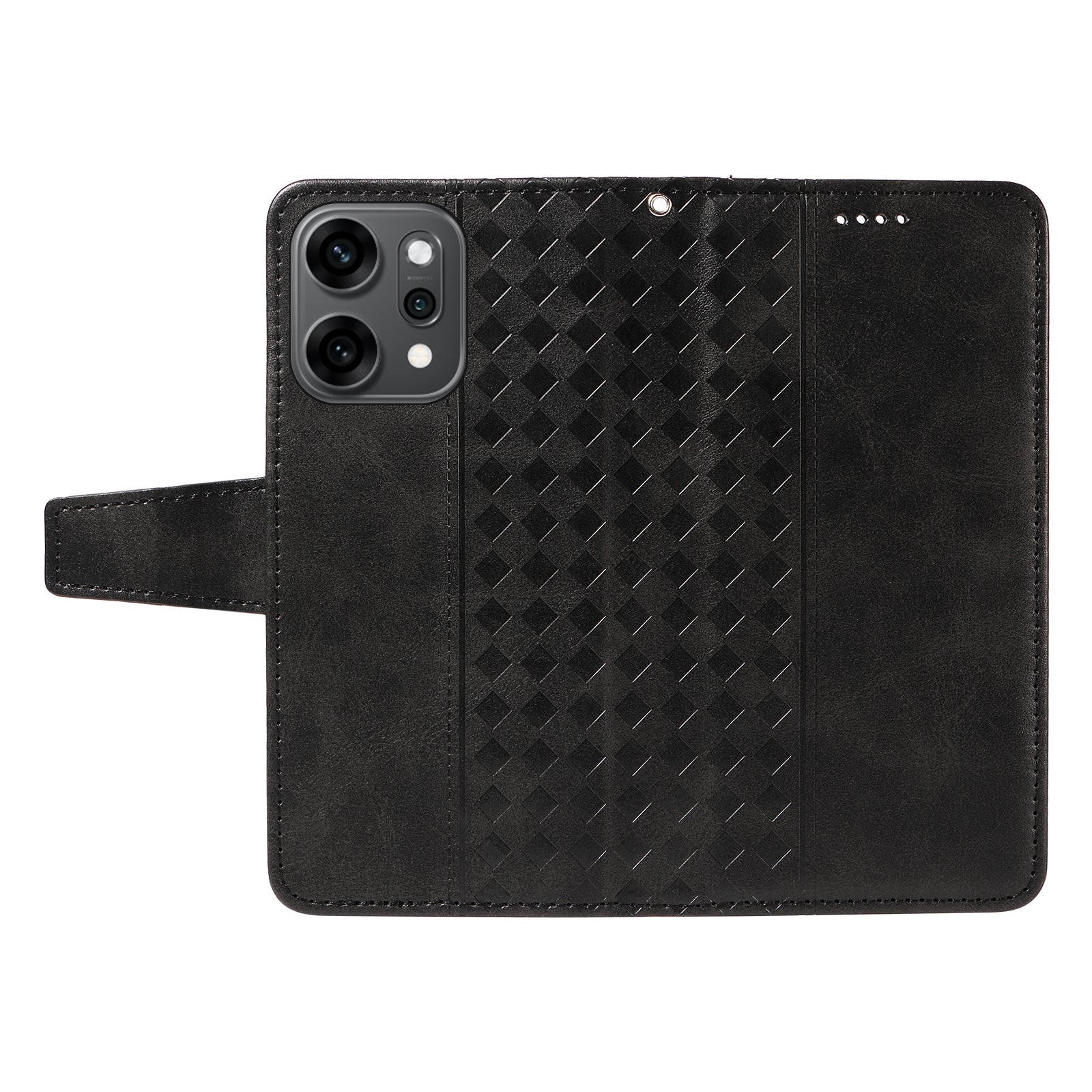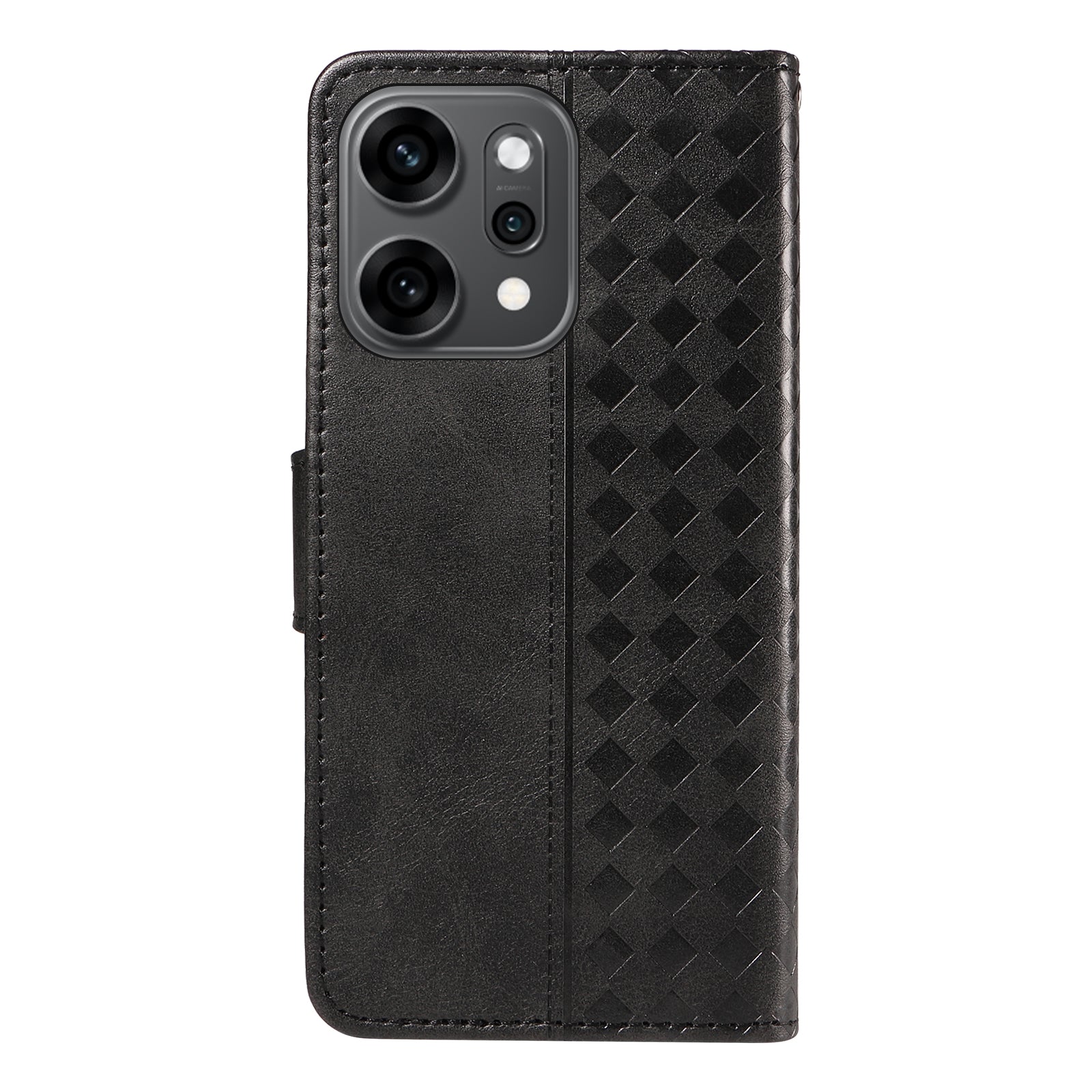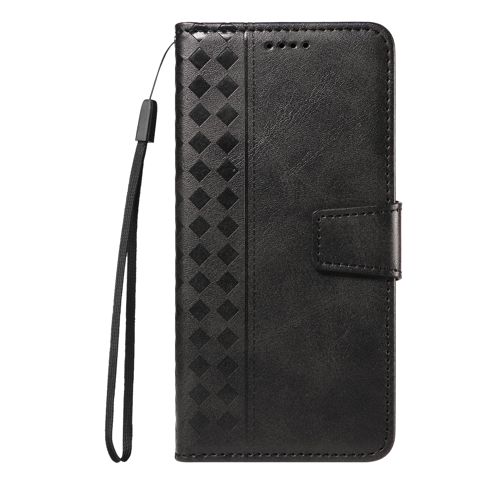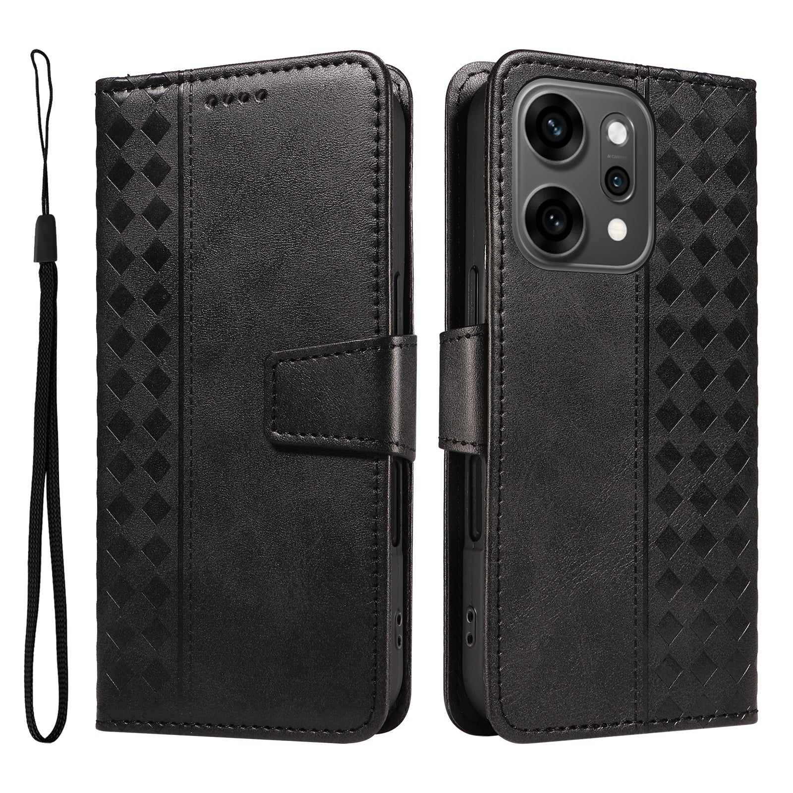 For Oppo Reno14 Pro 5G (China) / Oppo Reno14 Pro 5G (Global) Leather Case Wallet Stand Grids Imprinted Phone Cover with Strap - Black