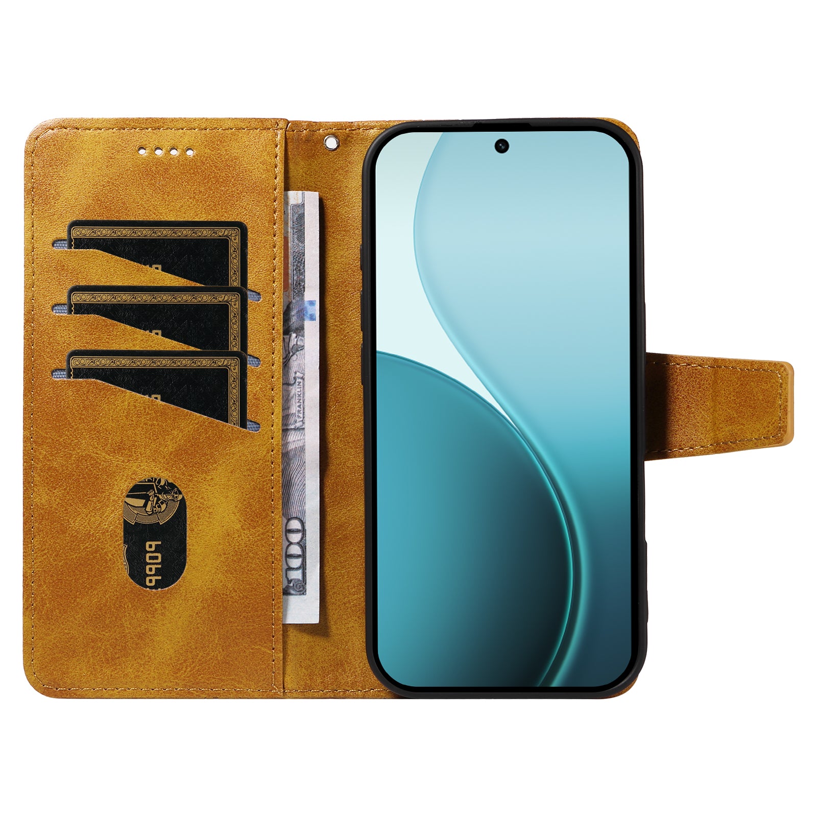 For Oppo Reno14 Pro 5G (China) / Oppo Reno14 Pro 5G (Global) Leather Case Wallet Stand Grids Imprinted Phone Cover with Strap - Yellow