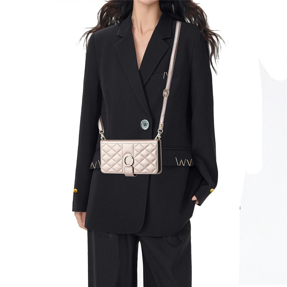 For Oppo Reno14 Pro 5G (Global) Case Ring Buckle Wallet Stand Rhombus Crossbody Leather Mobile Cover - Rose Gold