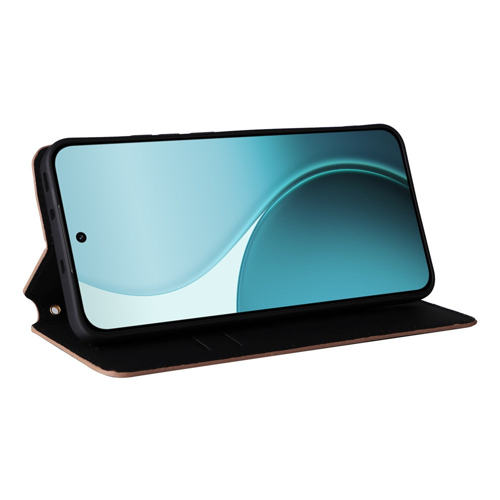 For Oppo Reno14 Pro 5G (Global) Case Wallet Rhombus Imprinted Leather Phone Cover - Brown