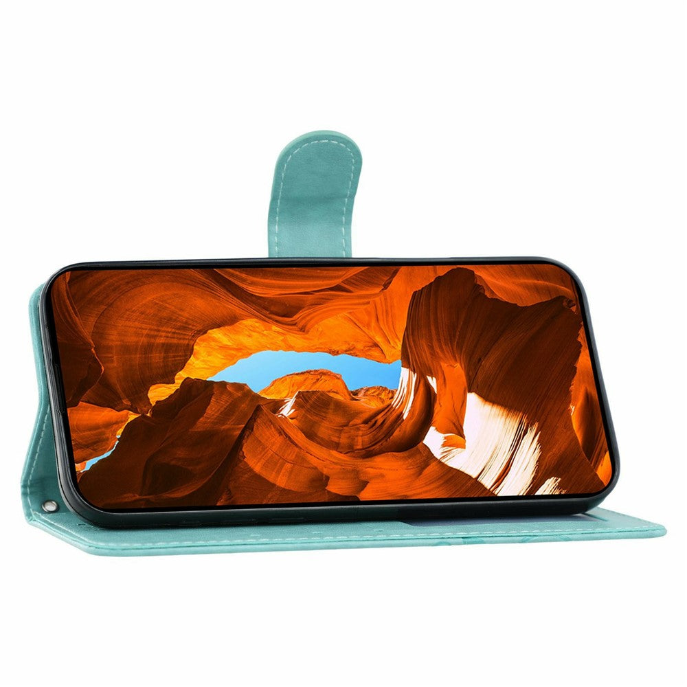 For Oppo Reno14 Pro 5G (Global) Case Wallet Stand Imprinted Rose Butterfly PU Leather Phone Cover - Green