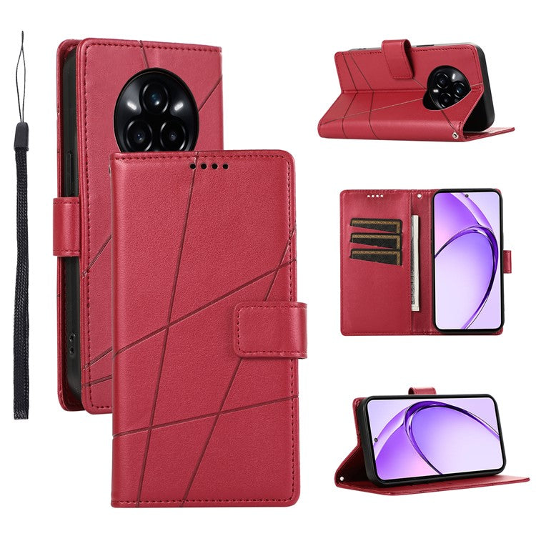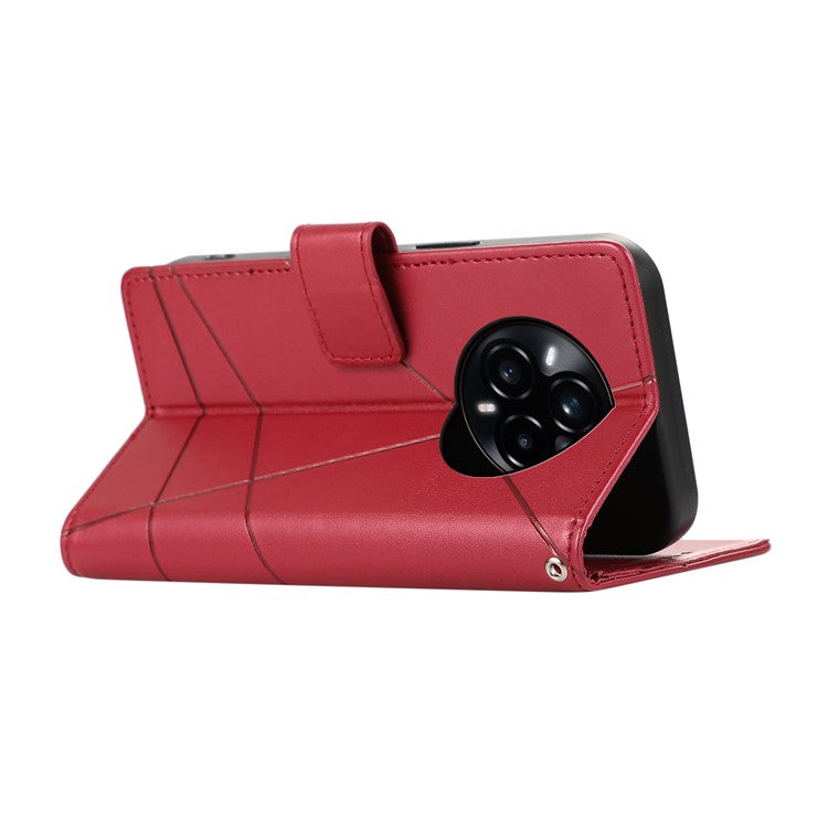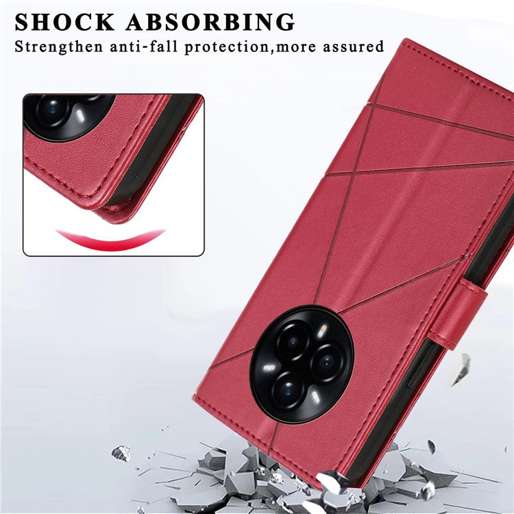 DF-06 For Realme 14 Pro 5G Phone Case Line Imprint Leather Wallet Cover - Red