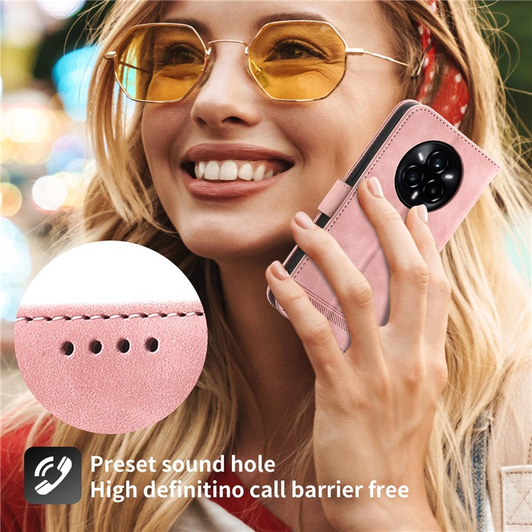 DIERFENG DF-03 For Realme 14 Pro+ 5G Leather Case Lines Imprint Wallet Phone Cover - Pink