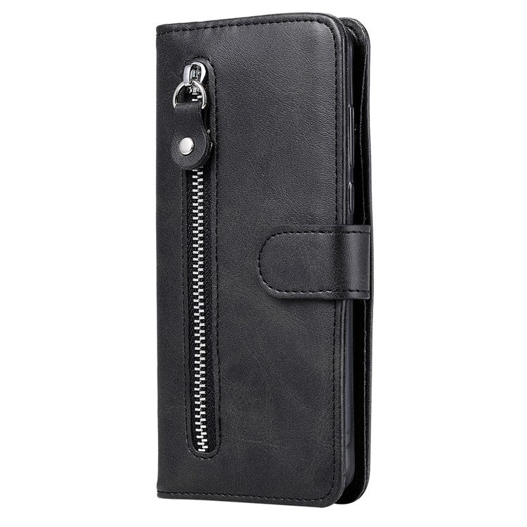 For Realme 14 Pro+ 5G Case Zipper Wallet Calf Texture PU Leather Phone Cover - Black