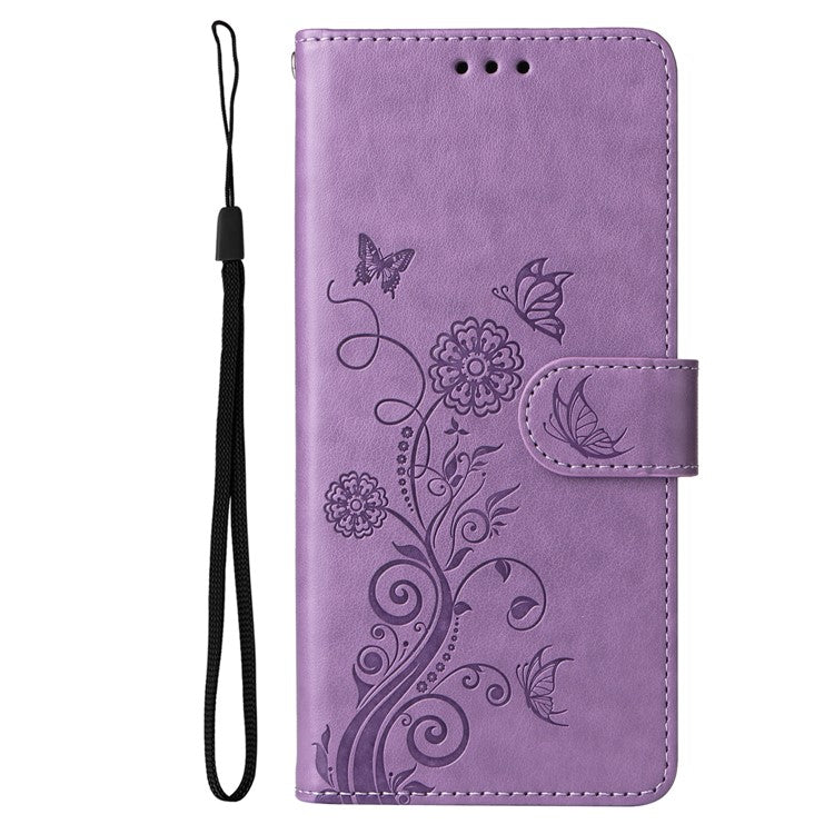 For Realme 14 Pro 5G Leather Case Butterfly Floral Imprint Wallet Stand Cover - Purple