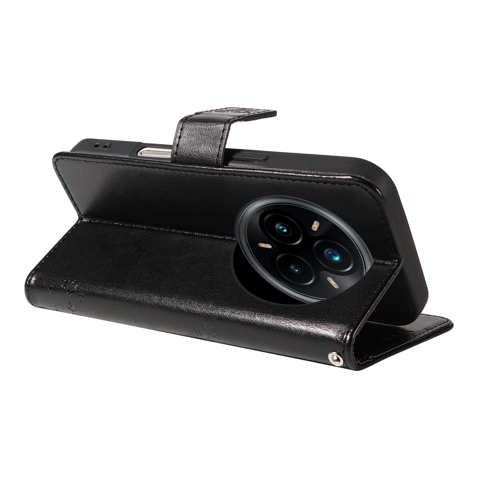For Realme 14 Pro+ 5G Phone Case with Stand Cat Tree Pattern Leather Wallet Mobile Cover - Black