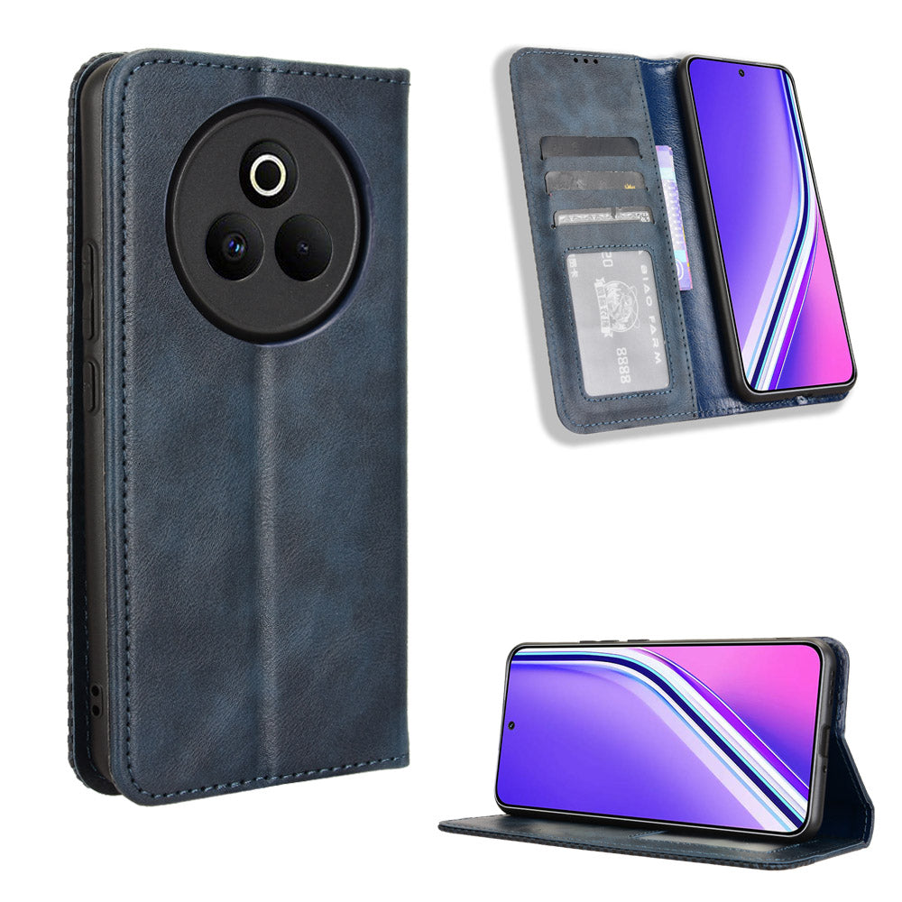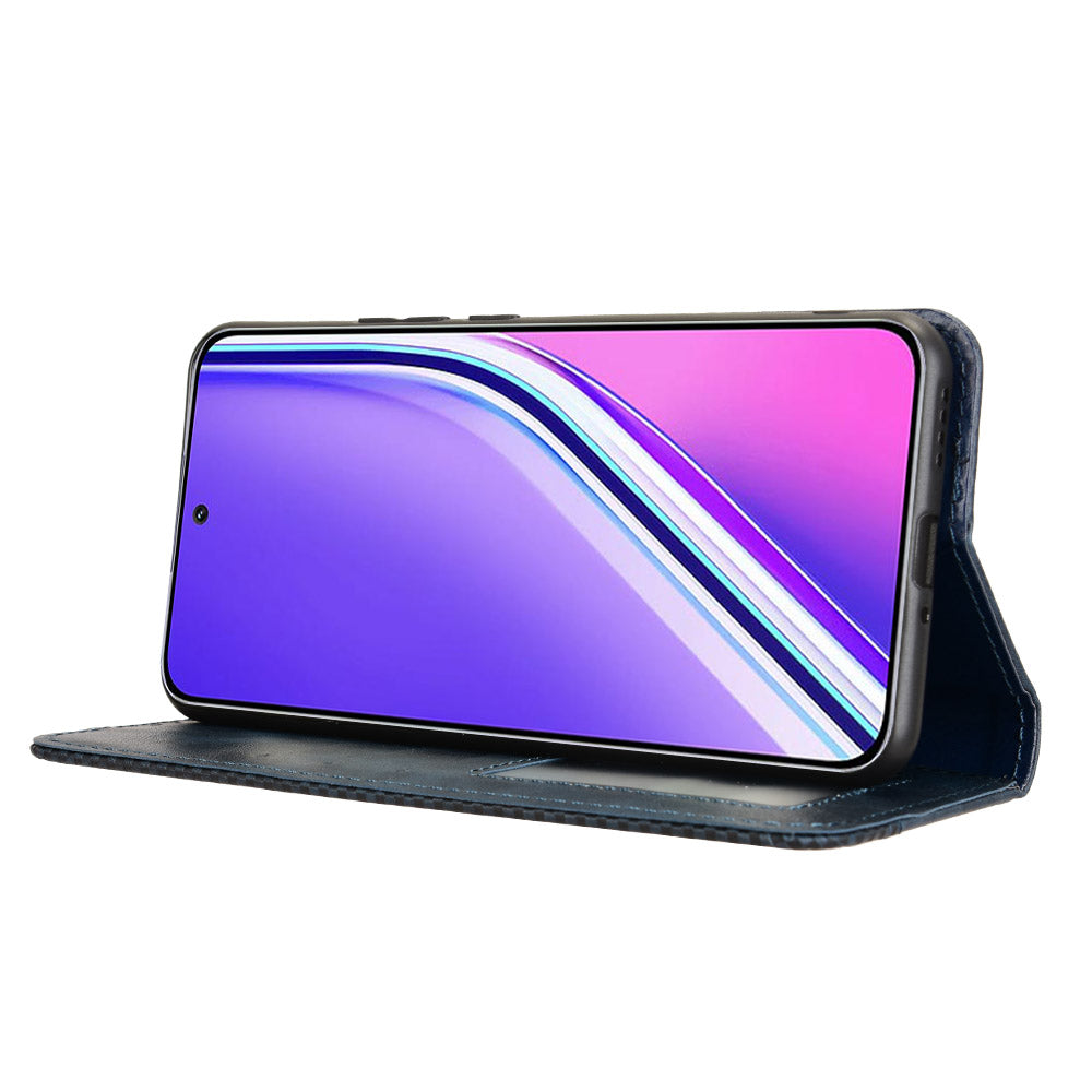 For Realme P3 Pro 5G Retro PU Leather Case Phone Wallet Stand Cover - Blue