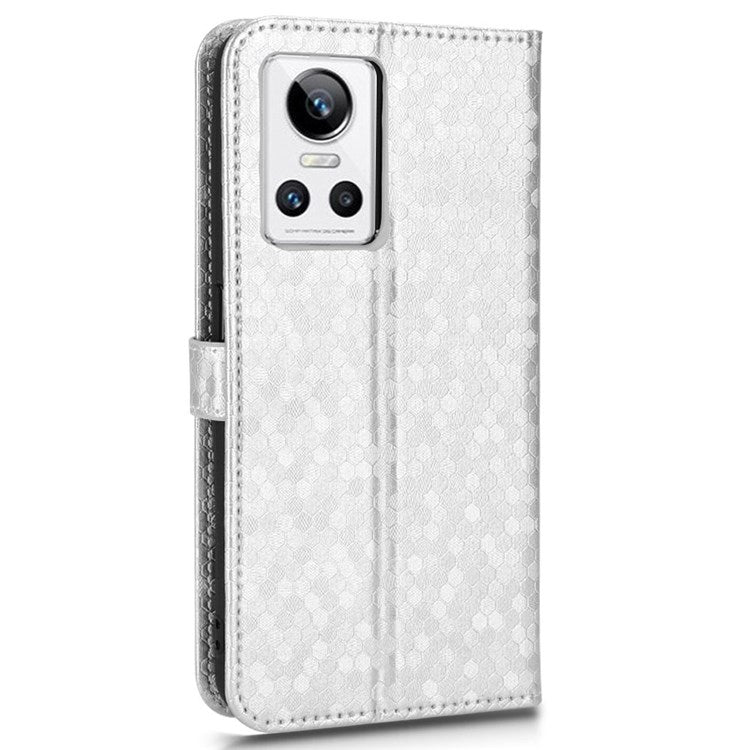 Anti-Drop Case for Realme GT Neo3 PU Leather Wallet Phone Case Dot Pattern Imprinted Scratch-Proof Folio Flip Cover with Strap - Silver