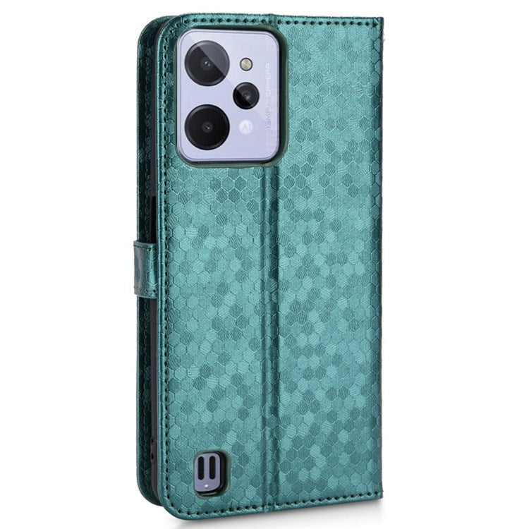 Anti-Drop PU Leather Case for Realme C31 Wallet Phone Case Dot Pattern Imprinted Protective Folio Flip Cover with Strap - Green