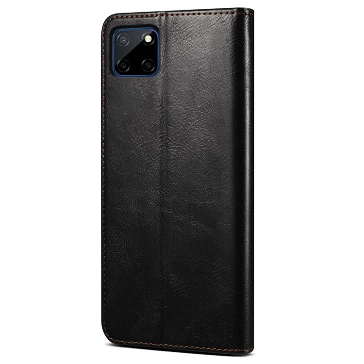 Anti-fall Waxy Crazy Horse Texture PU Leather Wallet Case Stand Magnetic Absorption Phone Cover for Realme C21Y/C25Y - Black