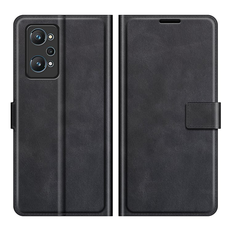 Anti-Scratch Well-Protected PU Leather TPU Wallet Stand Flip Phone Cover Case for Realme GT Neo2 5G/GT2/GT Neo 3T 5G - Black