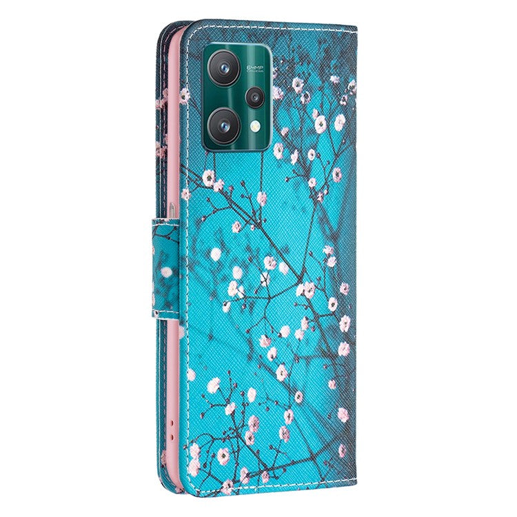 BF Pattern Printed Leather Case Series-1 for Realme 9 Pro 5G / 9 5G / V25 Anti-scratch Pattern Printed Wallet Stand Phone Case Shell - Plum Blossom