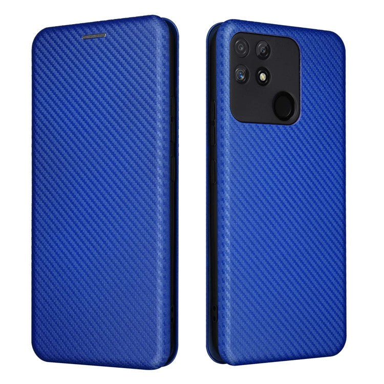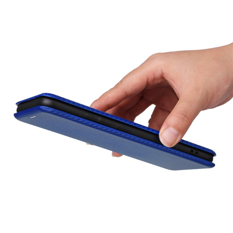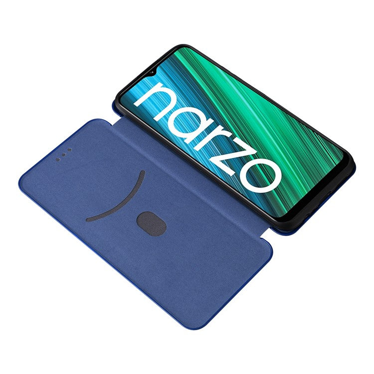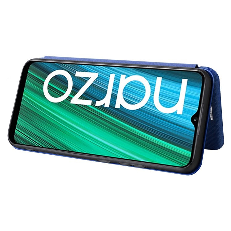 Carbon Fiber Texture Phone Case for Realme Narzo 50A PU Leather Anti-Drop Case Magnetic Closure Stand Cover with Card Holder - Blue