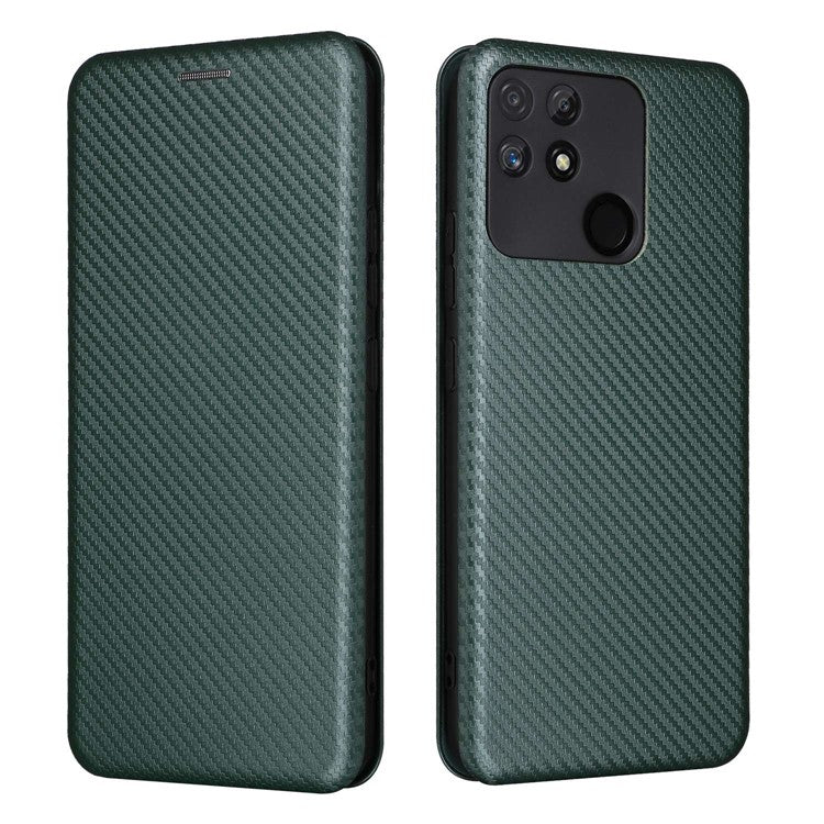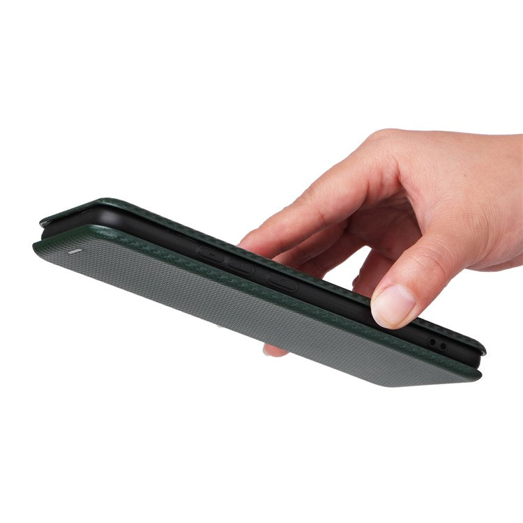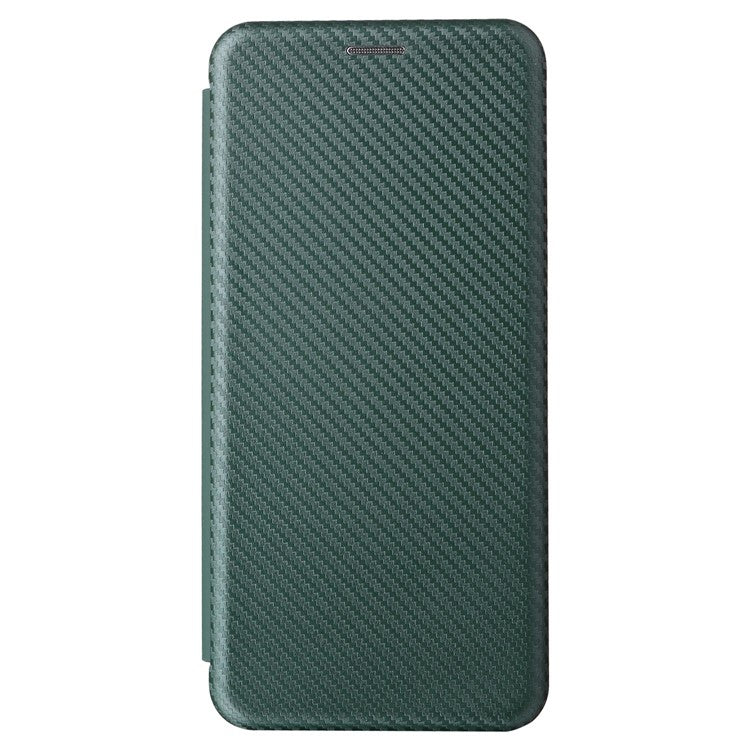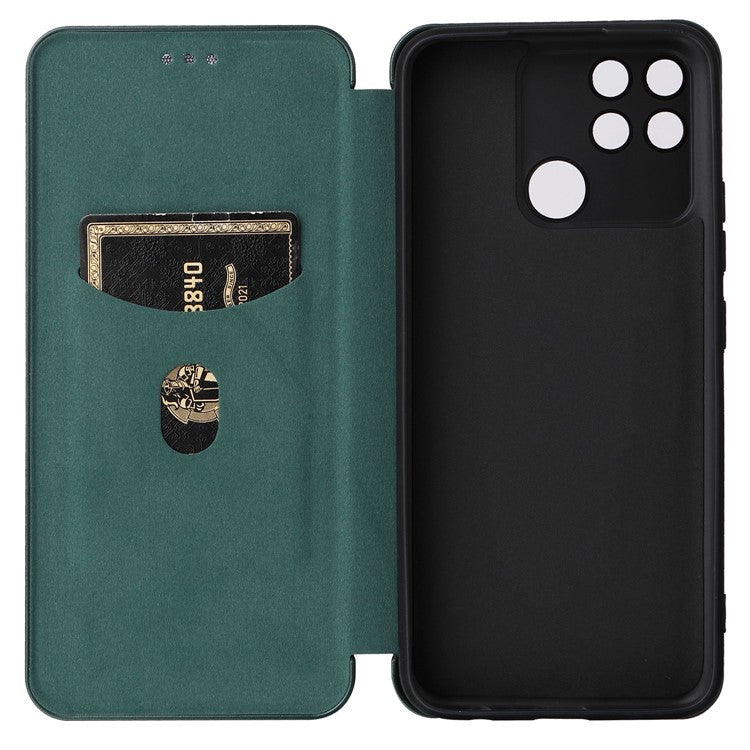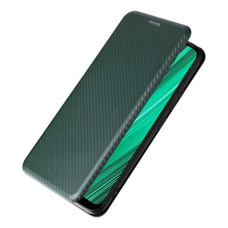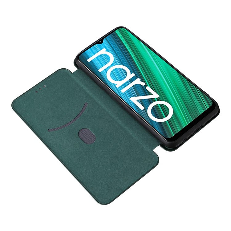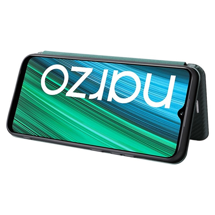 Carbon Fiber Texture Phone Case for Realme Narzo 50A PU Leather Anti-Drop Case Magnetic Closure Stand Cover with Card Holder - Green