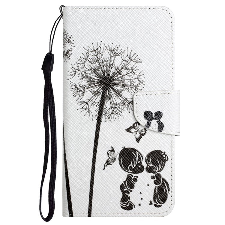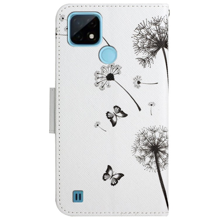 Cross Texture Pattern Printing Phone Case Stand Wallet Shockproof Leather Cover with Wrist Strap for Realme C21 - Dandelion
