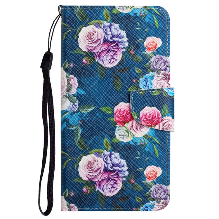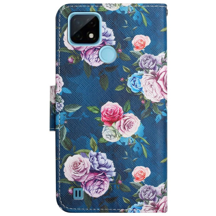 Cross Texture Pattern Printing Phone Case Stand Wallet Shockproof Leather Cover with Wrist Strap for Realme C21 - Fluorescent Rose
