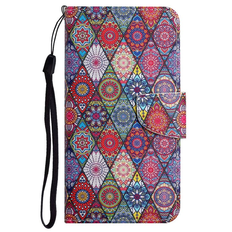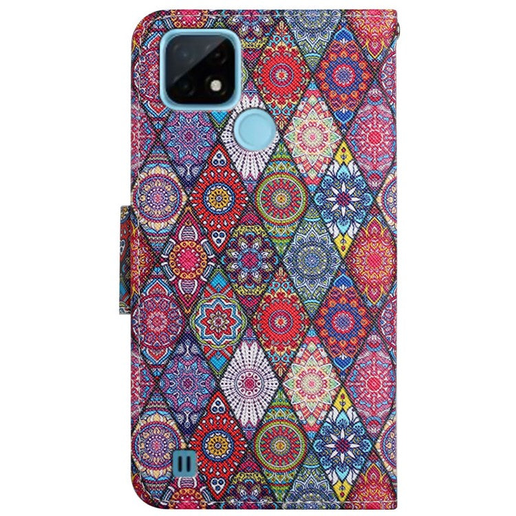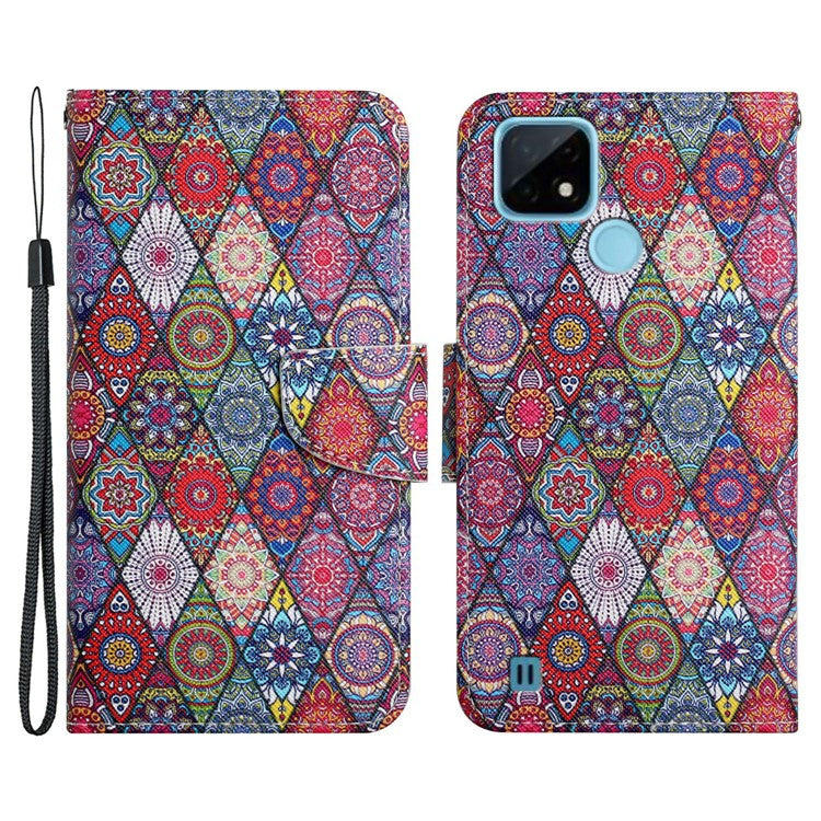 Cross Texture Pattern Printing Phone Case Stand Wallet Shockproof Leather Cover with Wrist Strap for Realme C21 - Kaleidoscope