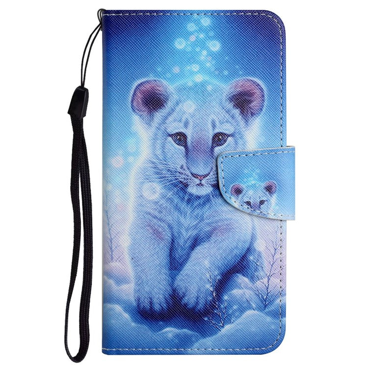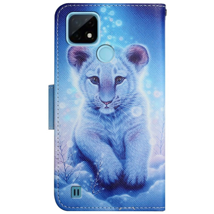 Cross Texture Pattern Printing Phone Case Stand Wallet Shockproof Leather Cover with Wrist Strap for Realme C21 - Leopard