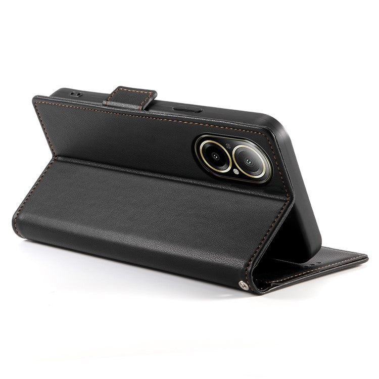 DF-010 For Realme C67 4G Case Leather Wallet Phone Cover with Magnetic Clasps - Black