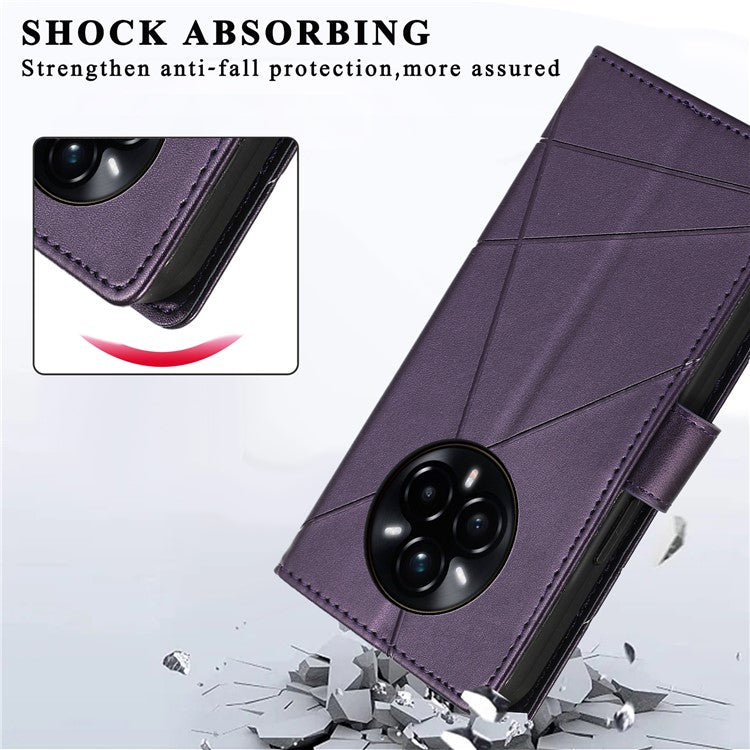 DF-06 For Realme 14 Pro+ 5G Phone Case Line Imprint Leather Wallet Cover - Purple