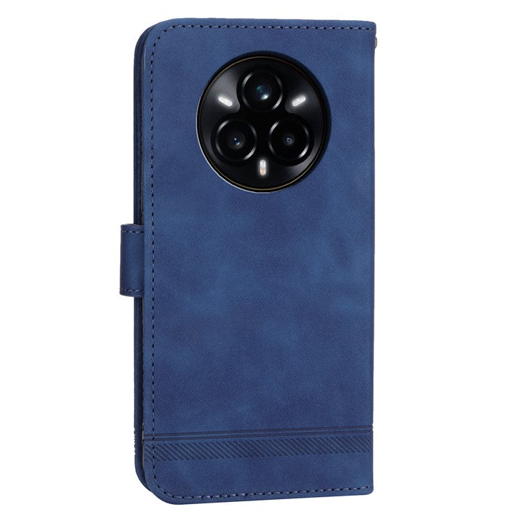 DIERFENG DF-03 For Realme 14 Pro+ 5G Leather Case Lines Imprint Wallet Phone Cover - Blue