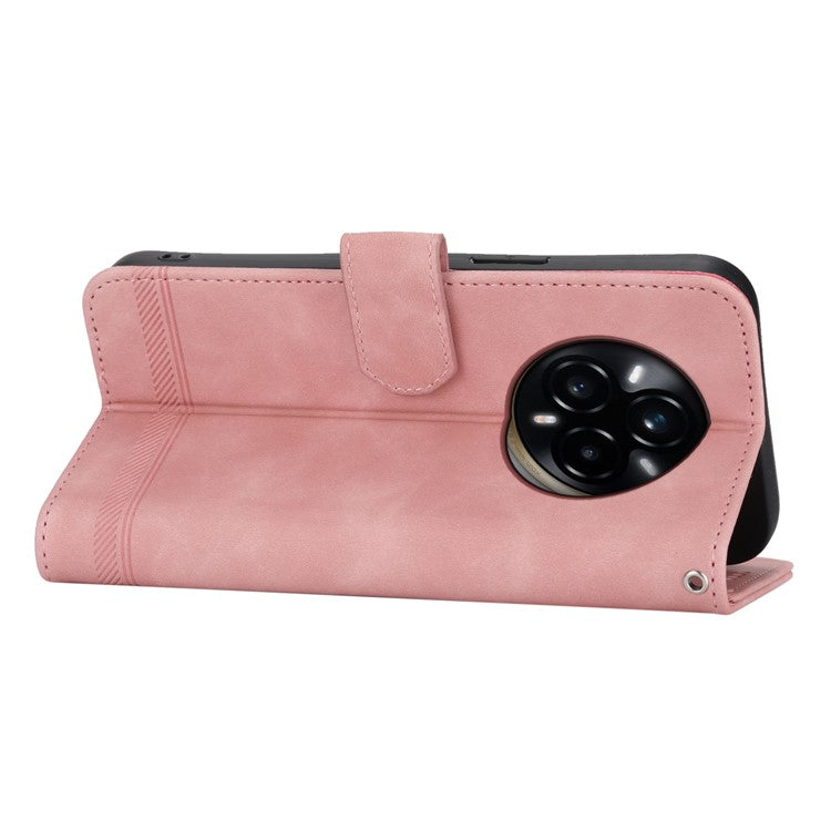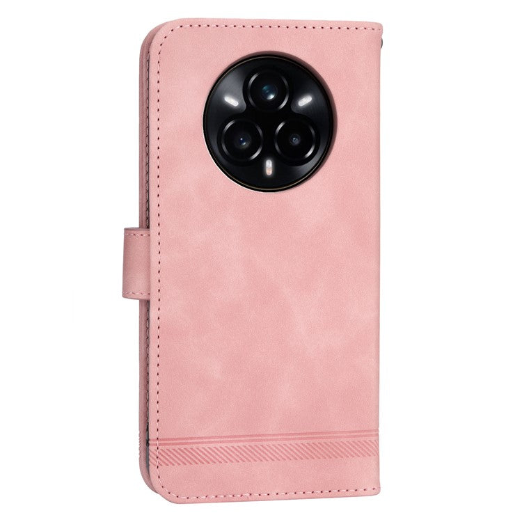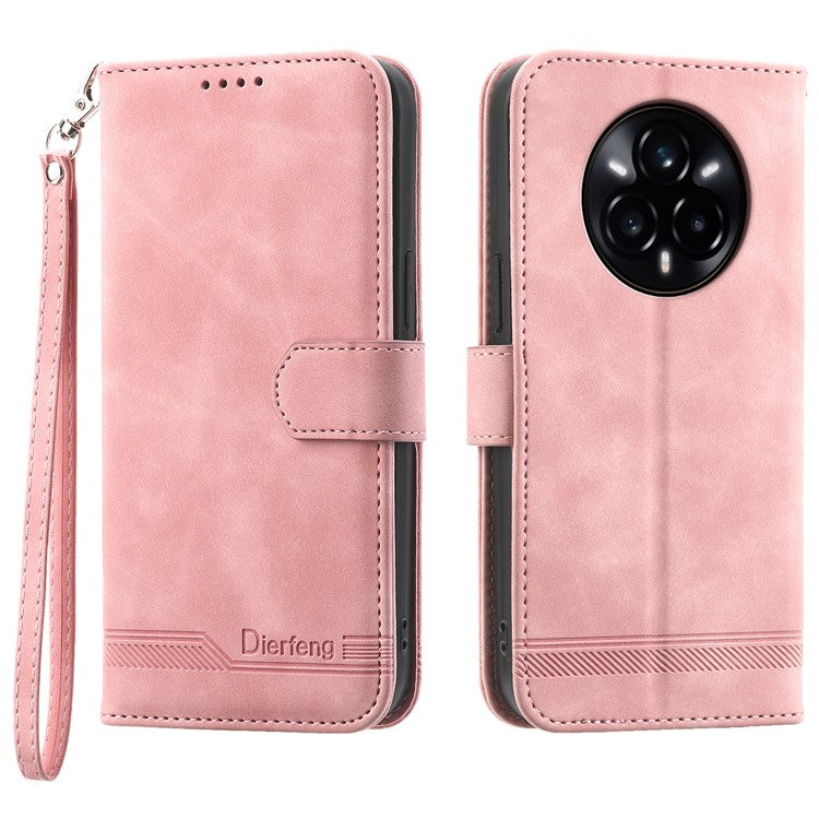 DIERFENG DF-03 For Realme 14 Pro+ 5G Leather Case Lines Imprint Wallet Phone Cover - Pink
