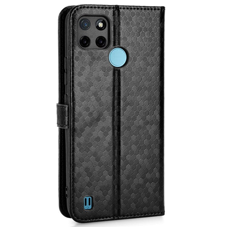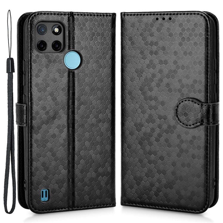 Dot Pattern Imprinted Case for Realme C21Y / C25Y Wallet Phone Case Shockproof PU Leather Cover with Strap - Black