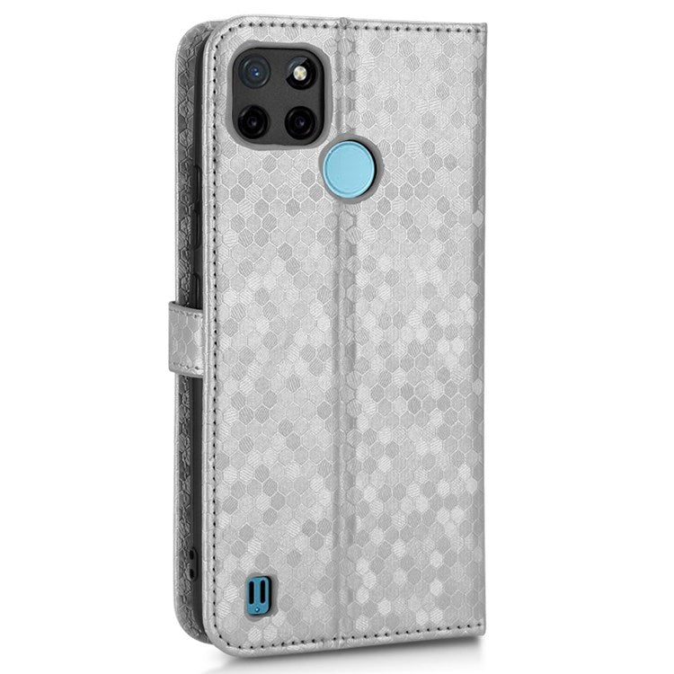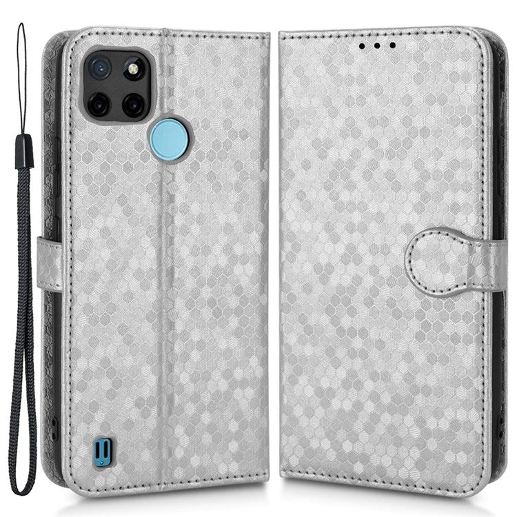 Dot Pattern Imprinted Case for Realme C21Y / C25Y Wallet Phone Case Shockproof PU Leather Cover with Strap - Silver