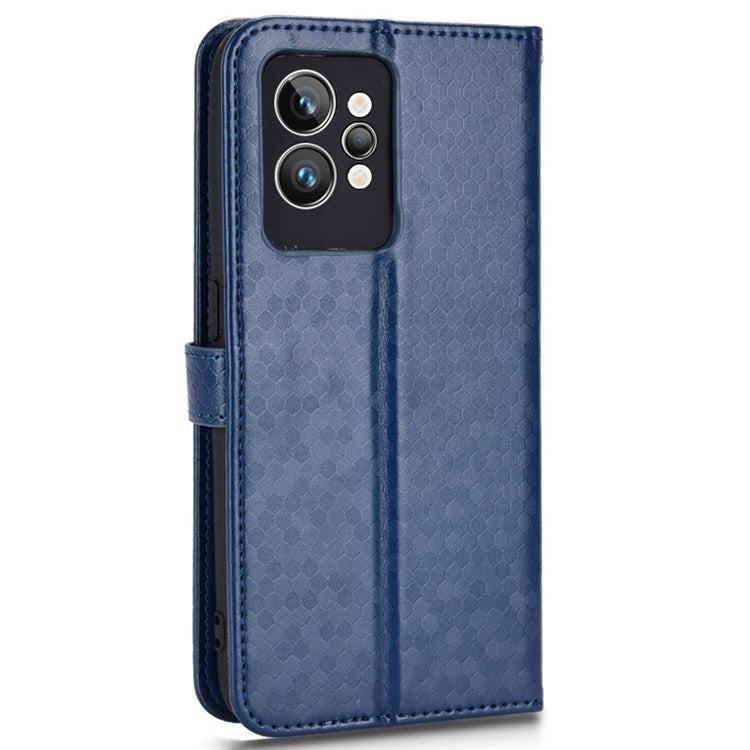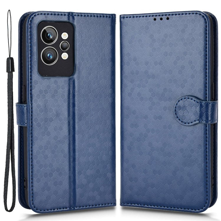 Dot Pattern Imprinted PU Leather Case for Realme GT2 Pro Wallet Phone Case Anti-Drop Cover with Strap / Wallet - Dark Blue