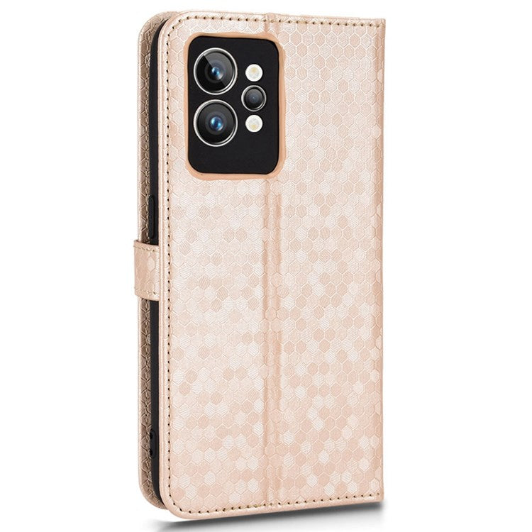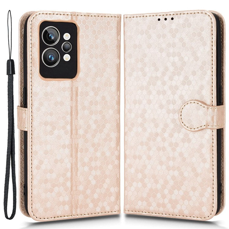 Dot Pattern Imprinted PU Leather Case for Realme GT2 Pro Wallet Phone Case Anti-Drop Cover with Strap / Wallet - Rose Gold