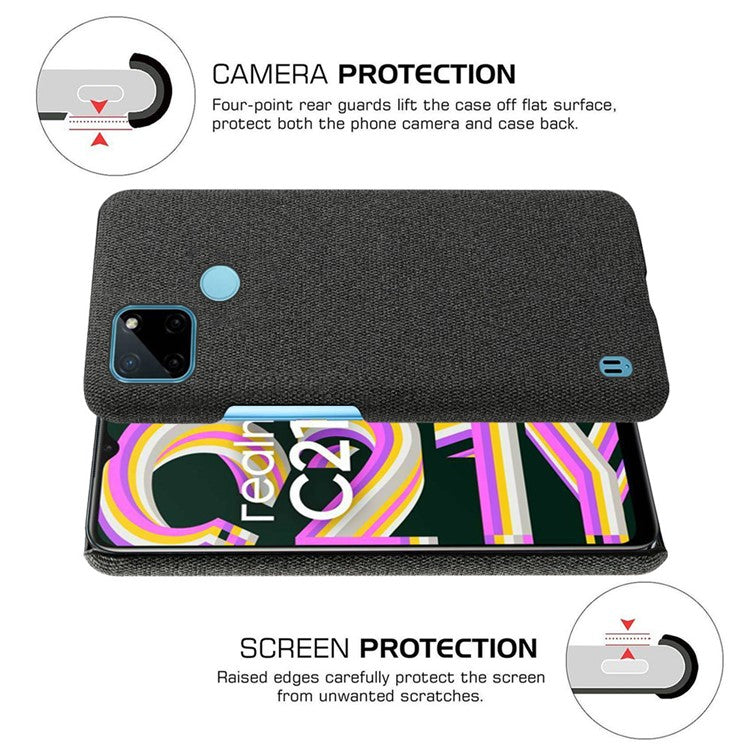 Dual-layer Protection Phone Bag Case Anti-fingerprint Cloth + PC Phone Case Shell for Realme C21Y / Realme C25Y - Black