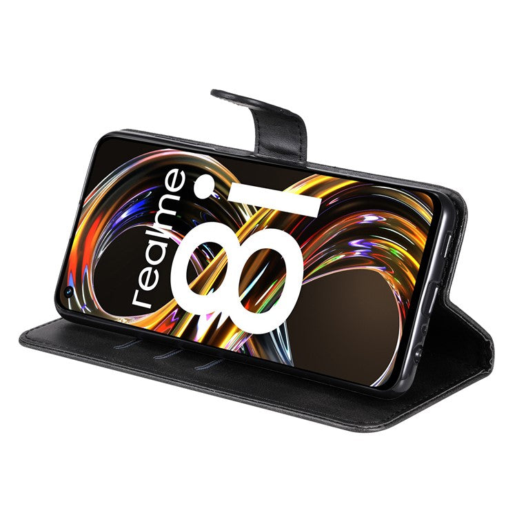 Folio Flip PU Leather Phone Case Zipper Pocket Design Wallet Drop-Resistant Case with Stand for Realme 8i/Narzo 50 4G - Black